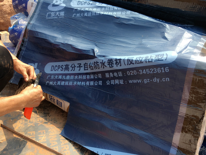 本公司2018年10月承接的大英碧桂園地下室防水工程施工業務,大英碧桂園地下室防水按照圖紙設計采用高分子自粘防水卷材(反應粘型)施工,承臺采用水泥基滲透結晶型防水涂料涂刷。