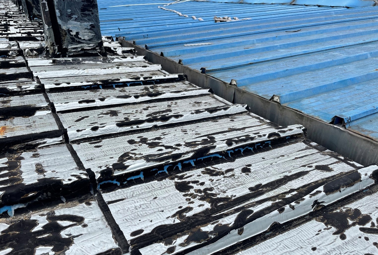 ⑤ 也有一些在彩鋼頂表面滿鋪貼TPO防水卷材將頂部全部蓋住,但是全部蓋住之后經過實際驗證,TPO防水卷材在彩鋼瓦表面曬幾年之后收縮導致漏水,并且TPO防水卷材蓋住之后,防水卷材揭開之后下面的水汽在彩鋼瓦與防水卷材之間,導致下面的彩鋼瓦銹蝕很厲害,將基層彩鋼瓦都給銹蝕爛了,所以不建議采用TPO防水卷材處理。