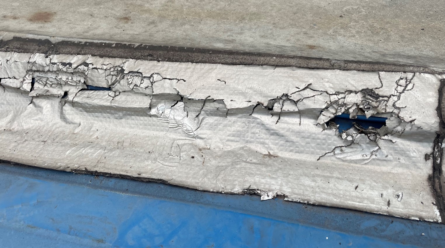 ④有很多的人用丁基膠帶粘貼彩鋼瓦屋面的搭接縫,但是經過實際驗證,丁基膠帶在彩鋼瓦表面粘貼上基本兩三年就不行了,就會開裂了,以下是丁基膠帶粘貼了才兩年就開裂的情況,根據實際使用驗證,所以不建議彩鋼瓦表面使用丁基膠帶,因為耐久性差。