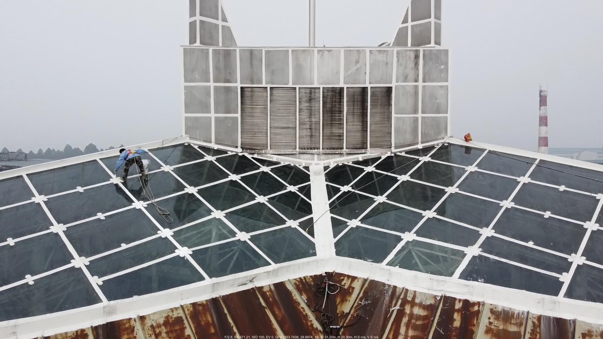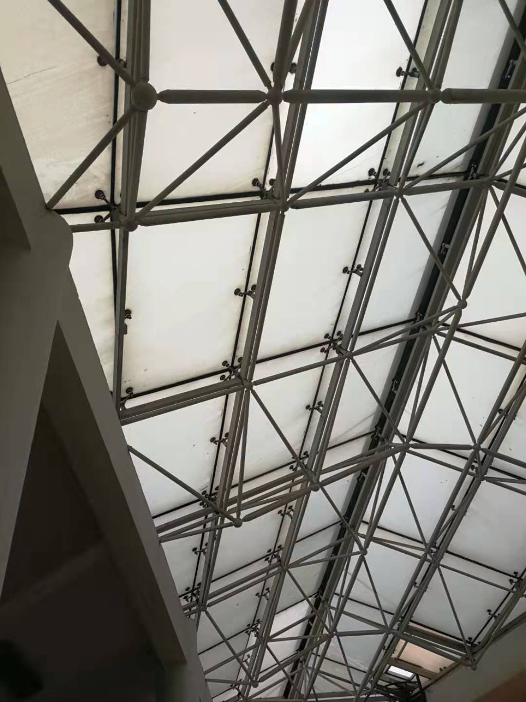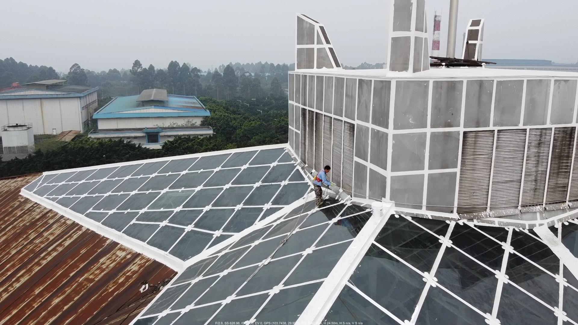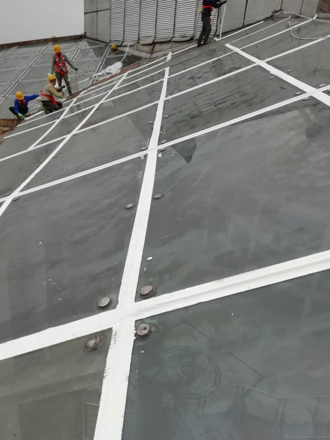 本公司承接的四川啟明星鋁業(yè)有限責任公司綜合辦公樓玻璃屋面防水工程,啟明星鋁業(yè)坐落于眉山市東坡區(qū)甘眉工業(yè)園區(qū),廠區(qū)內的綜合辦公樓頂部中間區(qū)域為玻璃屋面,之前玻璃屋面下雨的時候漏水點位較多,基本上可以說是外面下大雨室內下小雨,甲方也安排了人員對玻璃頂?shù)牟AЫ涌p進行重新打膠處理,但是管不了不久又開始漏水,后來甲方經過多方面分析最終決定采納我公司的方案進行防水施工處理。