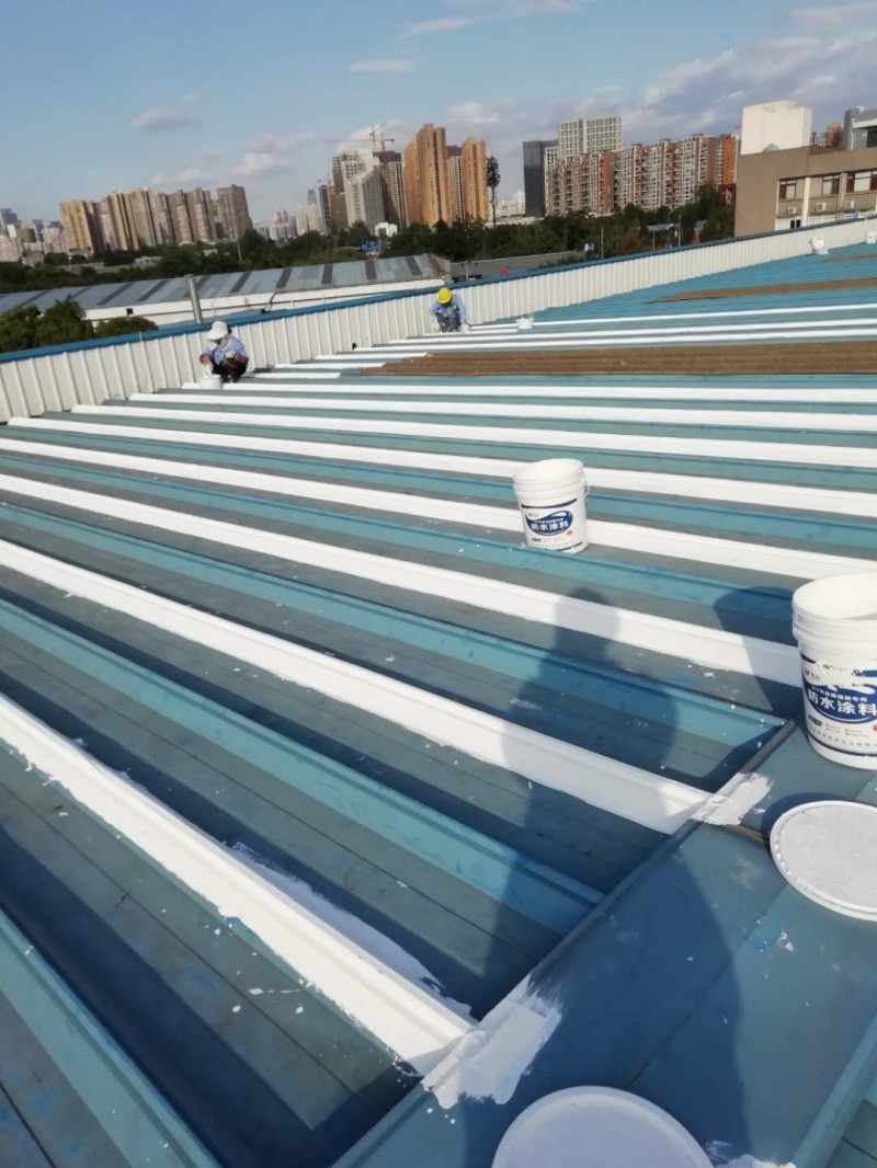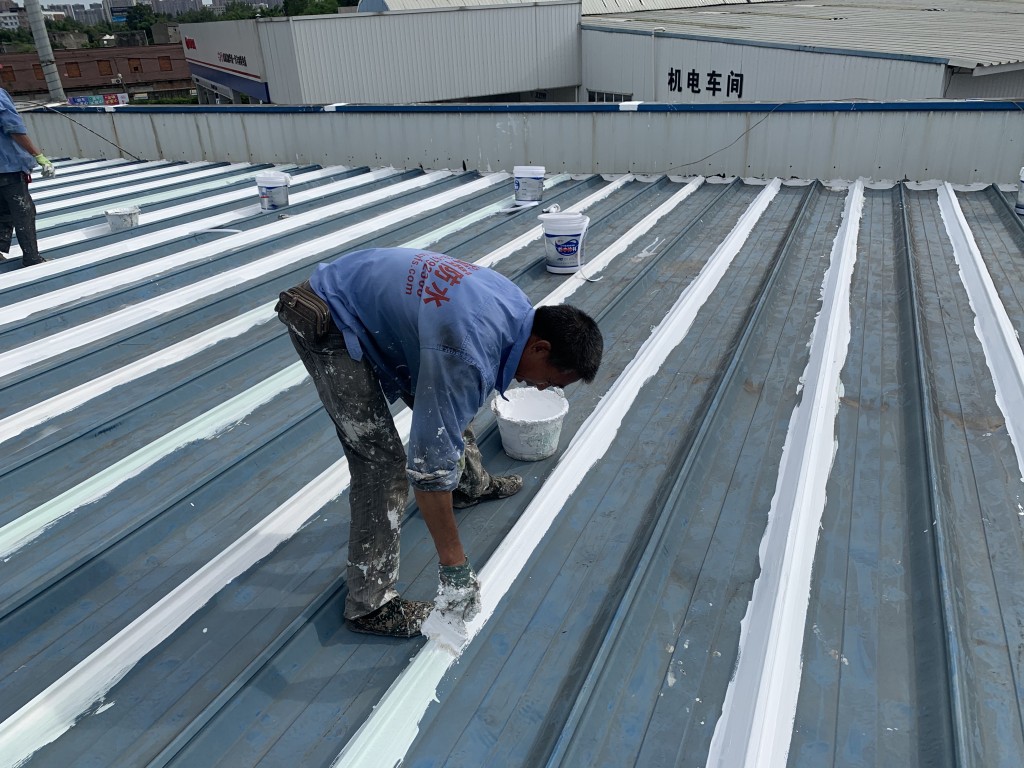 我公司采用的SYR金屬屋面專用防水涂料配合專用縫織聚酯布一布三涂形成的SYR金屬屋面專用防水系統(tǒng)具有防水、防腐、抗紫外線、反射隔熱的效果,特別適合于暴露屋面的使用,耐久性佳。