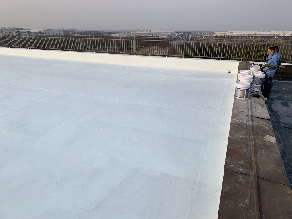 最終我們公司采取的方案是,采用我公司的聚合物防水涂料、SYR金屬屋面專用防水涂料配合專用縫織聚酯布進行施工,先針對屋頂的伸縮縫加強處理,然后再大面積施工,施工后的表層SYR金屬屋面專用防水涂料由于是專門針對裸露屋頂使用的,可以經受太陽直接暴曬,并且還具有反射隔熱作用,夏季屋頂降溫效果明顯。