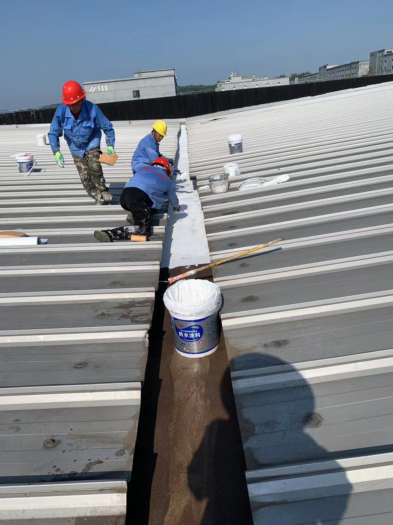 針對這一情況,成都蜀禹建筑防水工程有限責任公司迅速制定了科學合理的施工方案。他們首先對天溝內部進行了徹底的清理,然后使用彩鋼板插入已爛掉的下水管內,滲入漏斗進行固定。接著,他們采用SYR金屬屋面專用防水涂料配合縫織聚酯布進行防水防腐補漏施工處理。此外,為解決銹蝕問題,施工團隊在天溝內滿涂刷納米固銹劑進行基面固銹處理。待涂料干燥后,他們在天溝的底部及兩側面涂刷了SYR金屬屋面專用防水涂料并滿鋪貼專用縫織聚酯布,表面再涂刷SYR金屬面專用防水涂料。待所有涂料干燥后,他們又對表面進行了一次涂刷SYR金屬屋面專用防水涂料,使整個天溝得到了全面的保護。