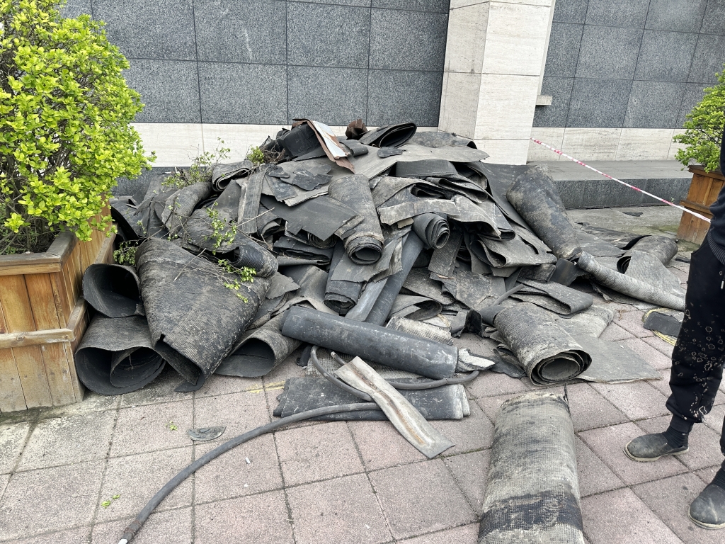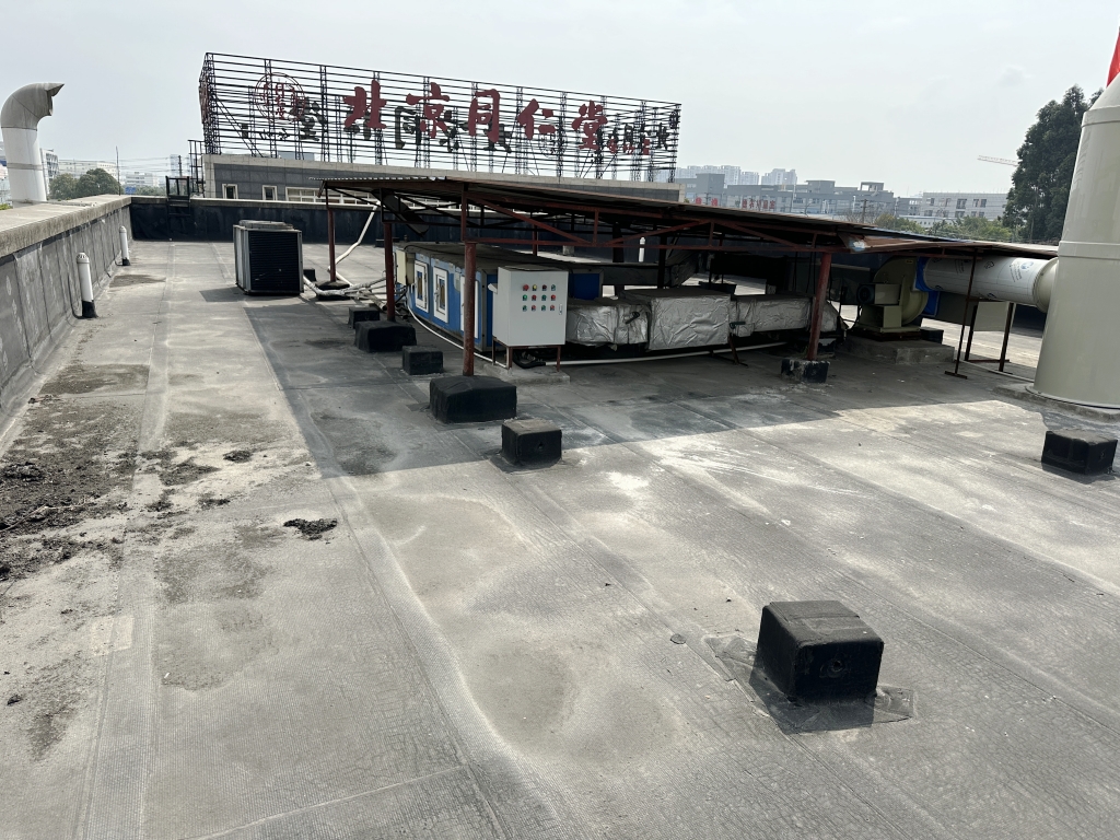 面對這一挑戰(zhàn),我們采用了先進(jìn)的SYR外露型無縫防水系統(tǒng)。在項目開始之初,我們注意到原屋頂表面覆蓋的是已經(jīng)老化開裂的改性瀝青防水卷材。為了確保防水效果的長久性和可靠性,我們決定先將這些老舊的防水卷材徹底清除,并對基層表面進(jìn)行細(xì)致清理,確保每一寸都干凈整潔,為后續(xù)的防水工作打下堅實基礎(chǔ)。