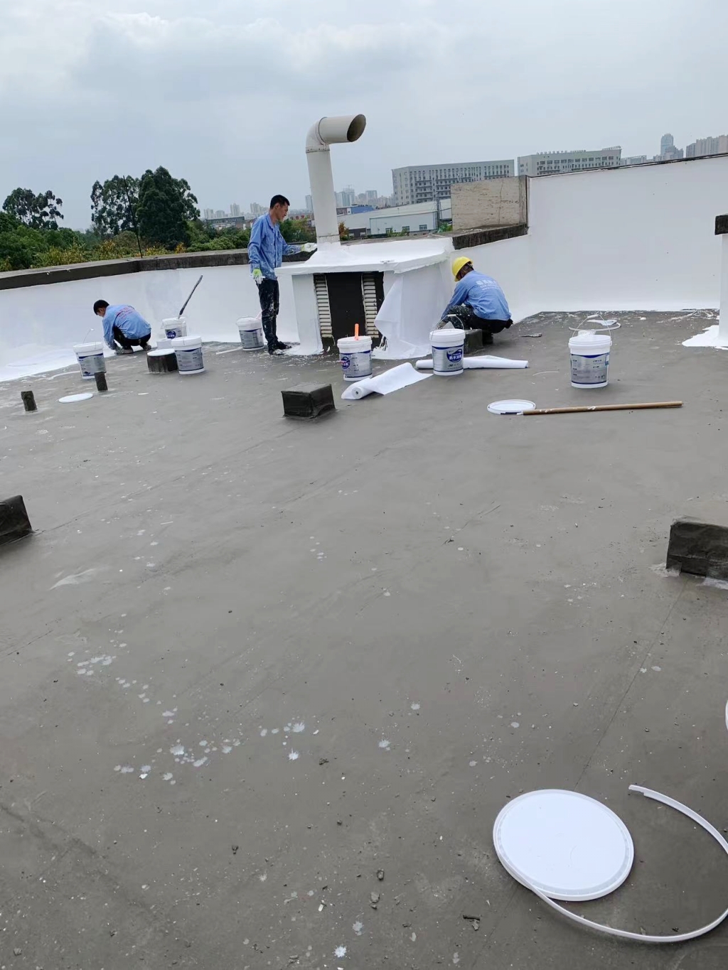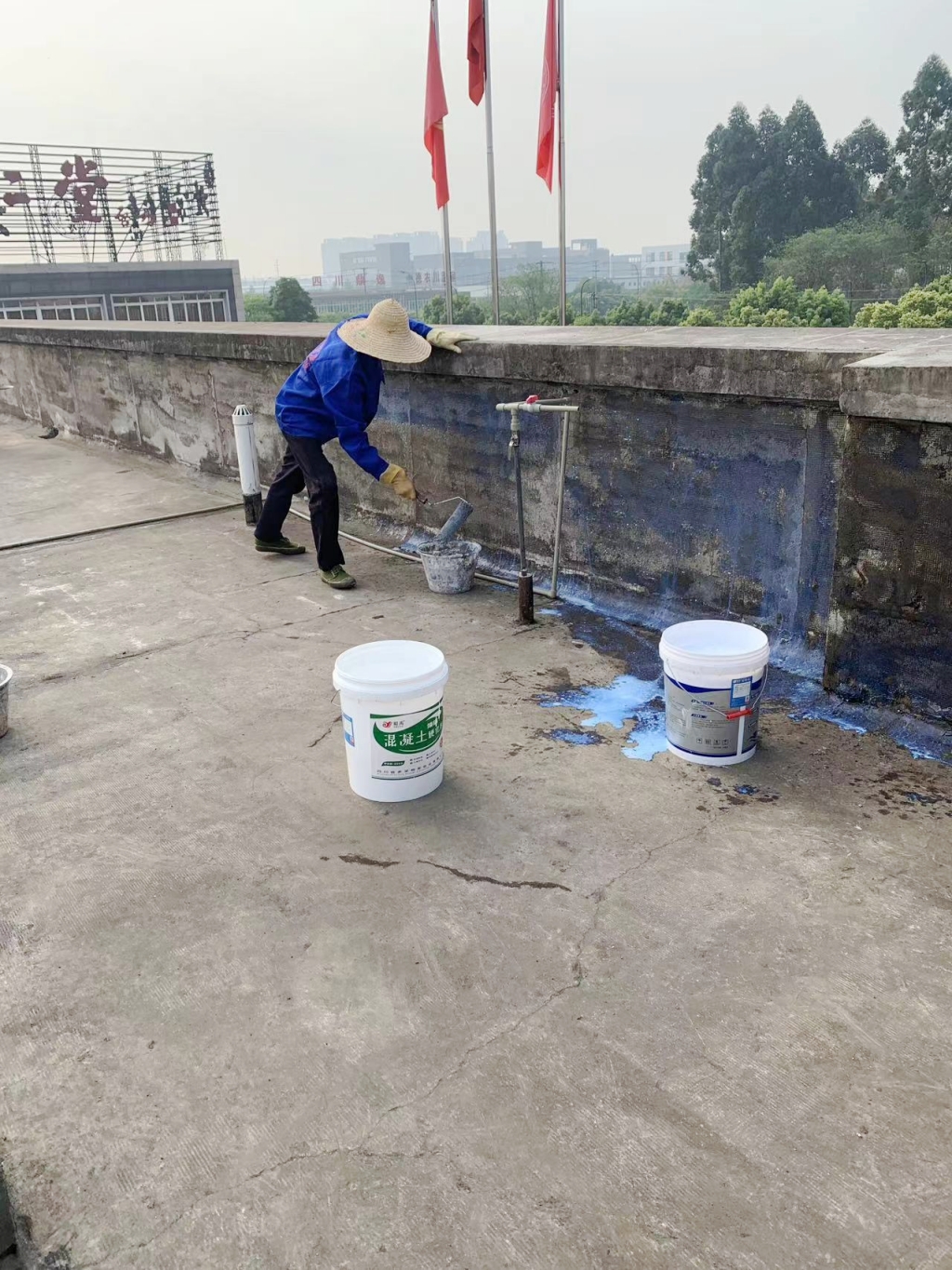 隨后,我們按照專業(yè)的施工流程,首先在基層表面涂刷聚合物防水涂料,并精心鋪貼專用縫織聚酯布。這一步驟不僅增強(qiáng)了防水層的附著力和耐久性,同時也為后續(xù)的涂層施工提供了良好的基底。接著,我們再次涂刷聚合物水泥防水涂料,確保涂層均勻且牢固。