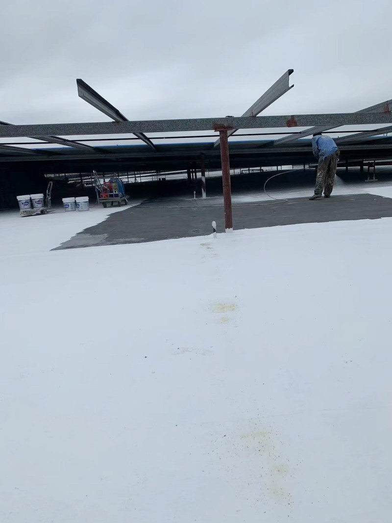 待防水層完全干燥后,施工團隊在表面又涂刷了SYR金屬屋面防水涂料。這種涂料不僅具有優秀的防水性能,還能夠耐受紫外線、風吹雨打等惡劣氣候條件的侵蝕,保護防水層不受損害。