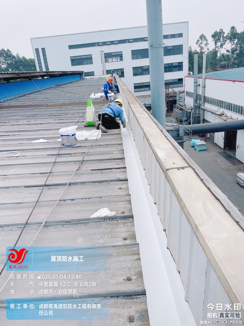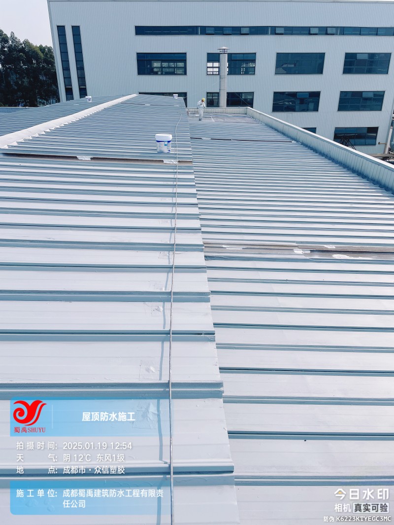 成都眾信塑膠 廠房鋼結構屋面防水補漏工程是成都蜀禹建筑防水工程有限責任公司在工業建筑防水領域的又一成功案例。我們始終堅持以客戶需求為導向,以專業技術為支撐,致力于為客戶提供高品質、可靠的防水解決方案。未來,我們將繼續秉承 “質量更優、服務至上” 的理念,不斷提升技術水平和服務質量,為更多客戶解決屋面防水難題,守護工業建筑的安全與穩定。
