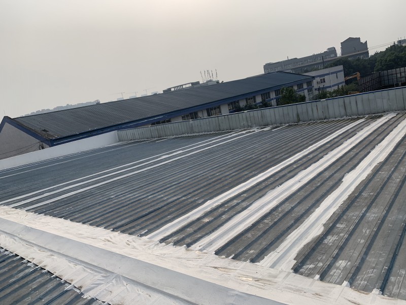 四川省歐朗仕汽車配件有限責任公司彩鋼頂廠房位于成都市雙流區羅漢路,此次處理的廠房為廠區內一、二、四、五、六、七、住宿樓的屋頂防水,彩鋼頂漏水情況以前表現出的現象是,在室內看到是兩邊靠近水溝的位置,下雨的時候從水溝位置漏水下來,后來將水溝全部進行防水處理了,結果下雨的時候還是漏水,搭著梯子仔細檢查才發現,彩鋼頂頂部的個別縫隙也在漏水,水從彩鋼頂斜坡上面漏水到了彩鋼瓦的夾層中,水在夾層中順著斜坡流至斜坡底端才漏下來,結果就是從靠近水溝的位置漏下來,如果不搭著梯子的話,從下面遠遠觀看,就以為是水溝在漏水,后來將漏水位置的上面斜坡部位彩鋼接縫進行防水處理了,再下雨就沒有漏水現象發生了,所以由于彩鋼頂的特殊性,水可能會在彩鋼頂斜坡內順著下滑至底端靠近水溝位置漏水,所以處理彩鋼頂漏水一般要將漏水位置對應的上面斜坡位置都進行防水處理才行。